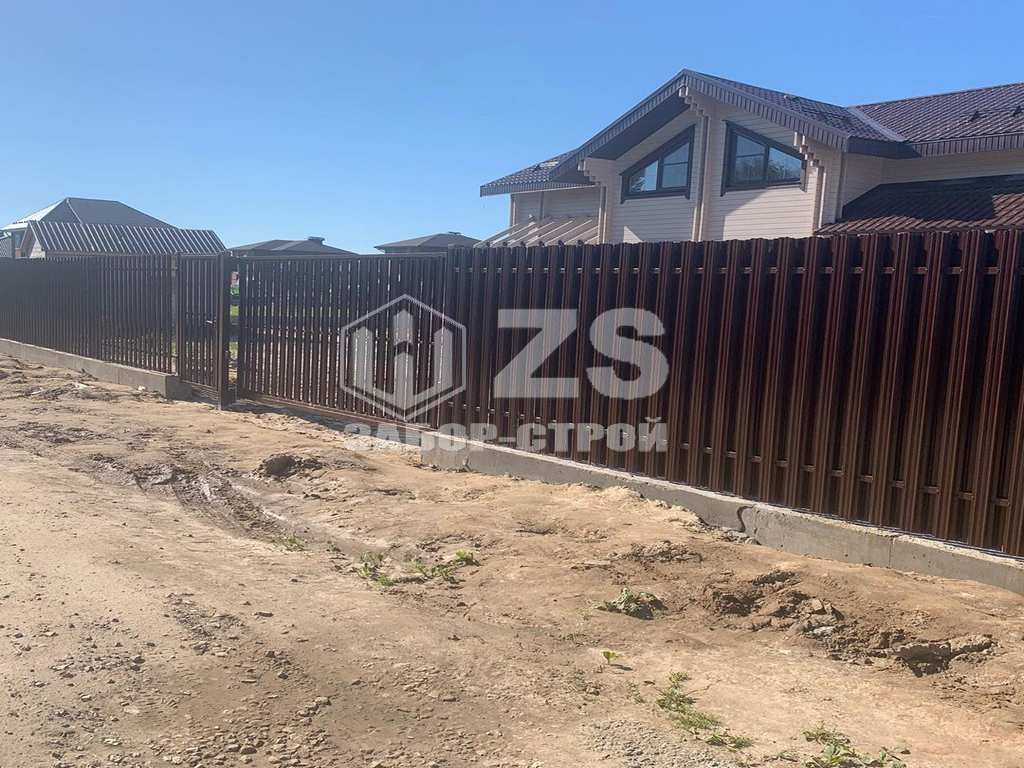- Забор на ленточном фундаменте из евроштакетника 45 метров
