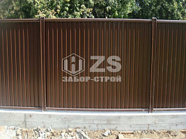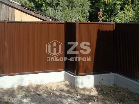 - Забор на ленточном фундаменте из профнастила 25 метров