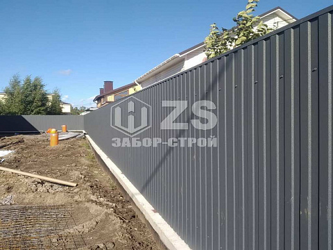 - Забор на ленточном фундаменте из профнастила 7 соток