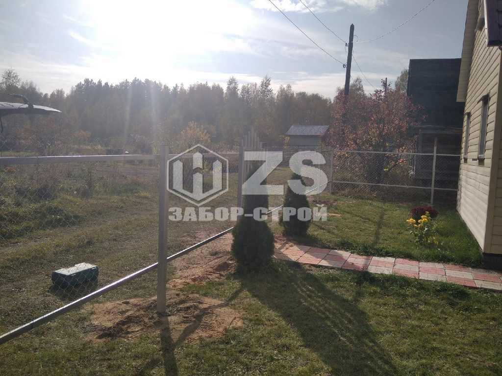 - Забор на столбах с утрамбовкой щебня из сетки рабицы 20 метров