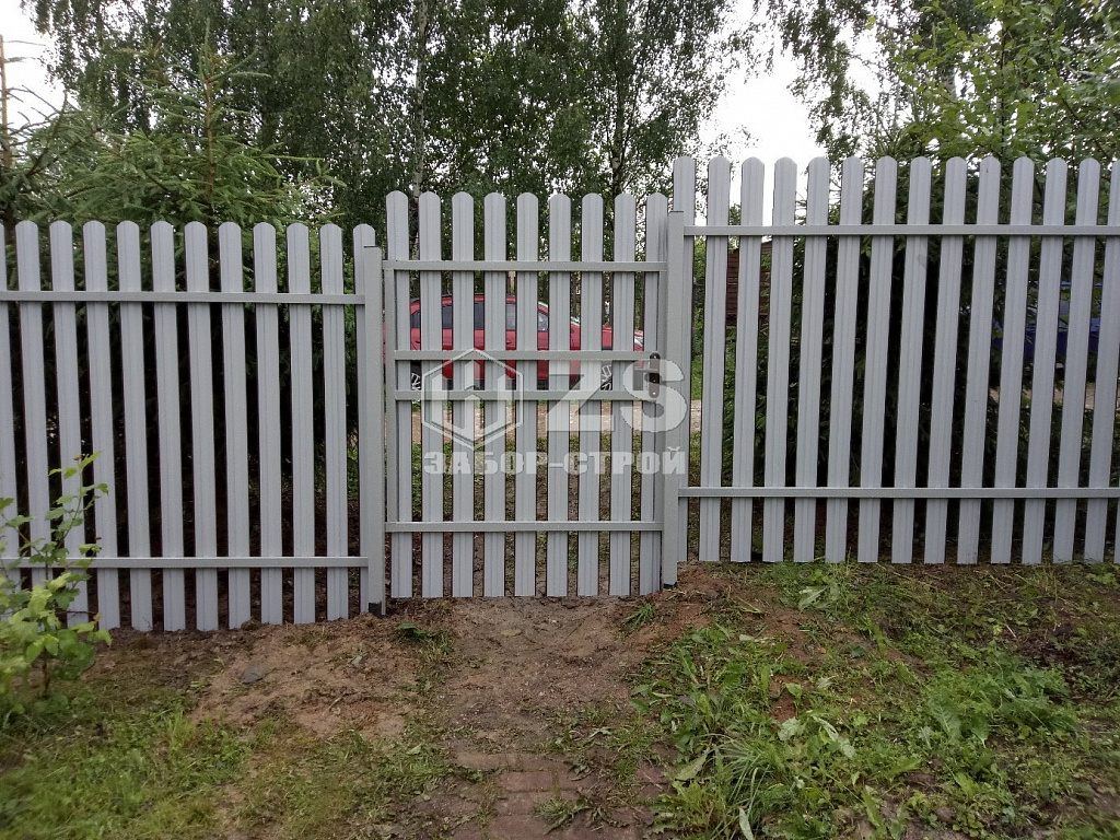- Забор на забивных столбах из евроштакетника 25 метров