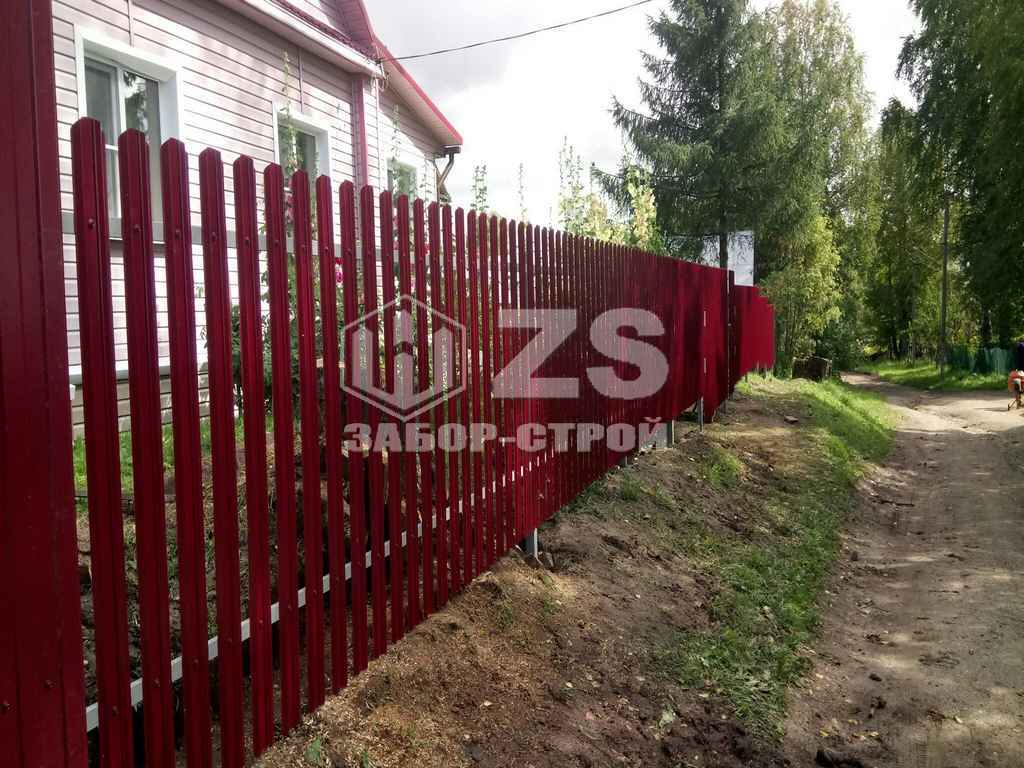 - Забор на забивных столбах из евроштакетника 8 соток