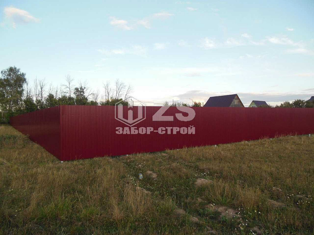 - Забор на забивных столбах из профнастила 50 метров
