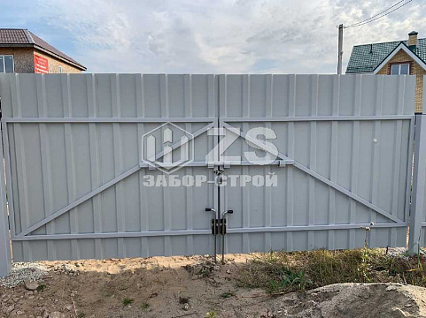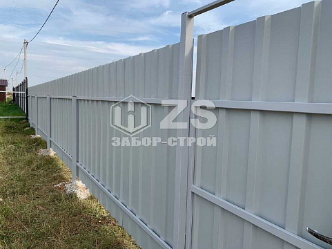- Забор с воротами из профнастила 15 метров